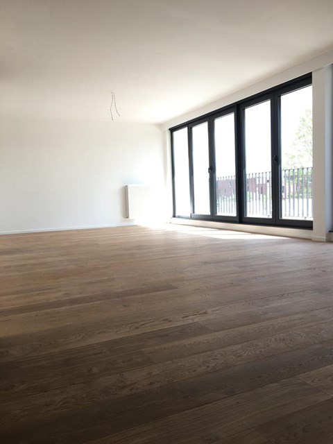 L'appartement comprend: hall d'entrée, hall (de nuit), deux chambres à coucher, salle de bains, toilettes invités, débarras, salle de séjour et cuisine ouverte avec terrasse.