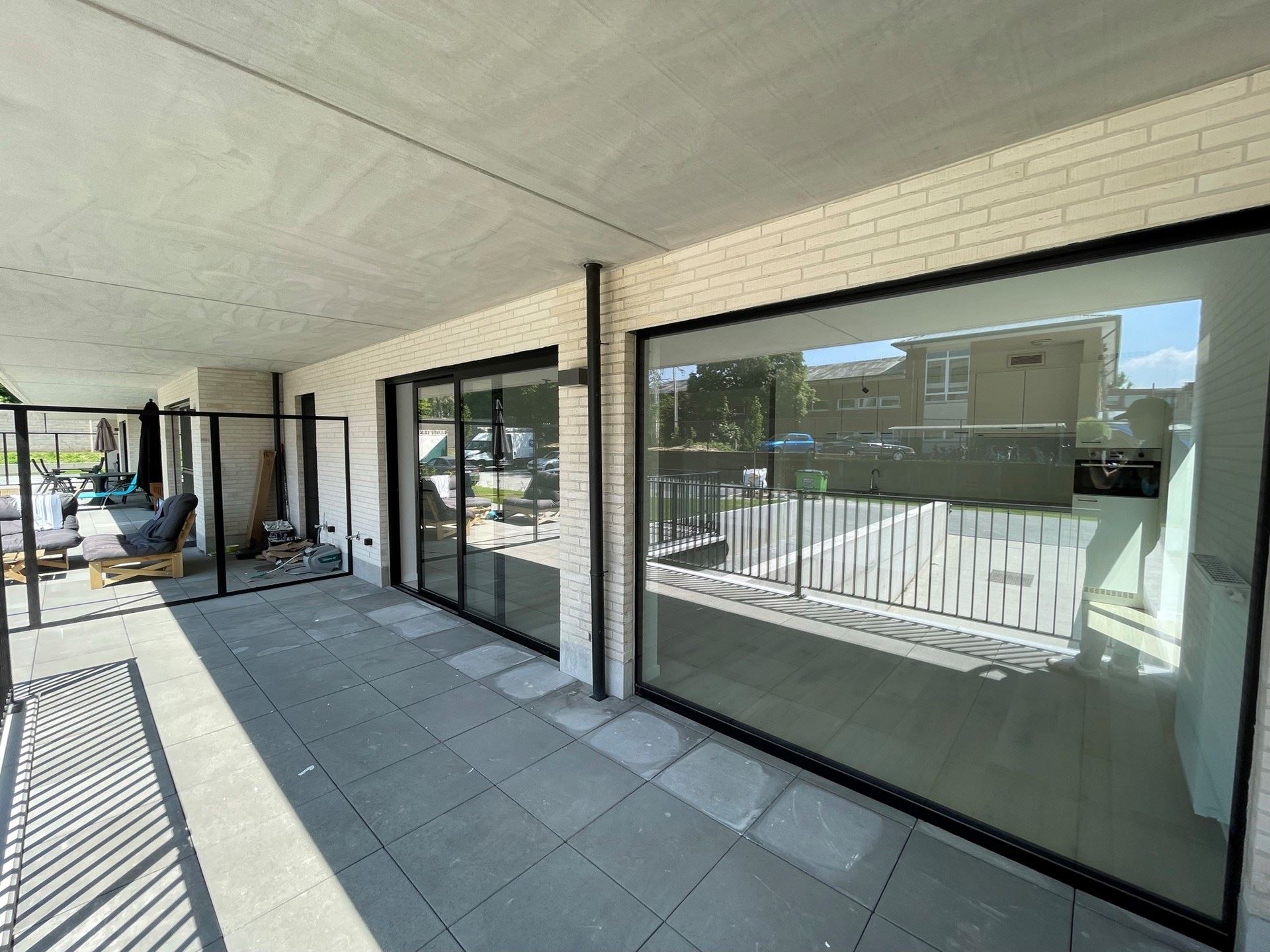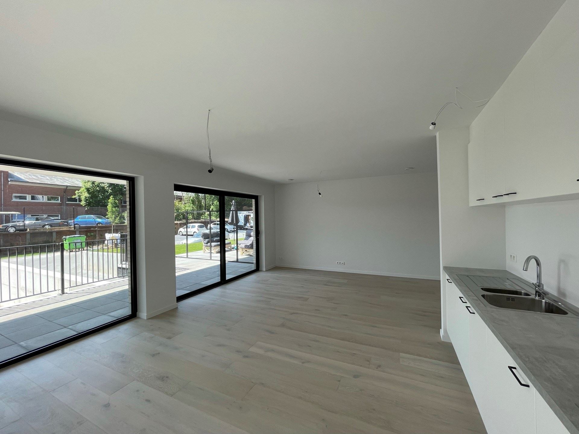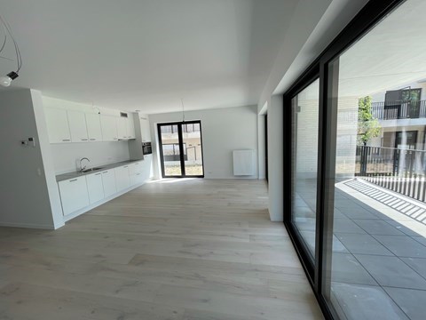 On entre dans cet appartement de 3 chambres par le hall d'entrée où se trouve le grand séjour avec cuisine ouverte équipée (équipée de : plaque induction, hotte aspirante, évier, lave-vaisselle et réfrigérateur). L'accès direct à la terrasse d'angle très spacieuse est un gros plus et, en partie grâce aux belles fenêtres, assure beaucoup de lumière. La salle de bain est équipée d'une spacieuse douche à l'italienne et d'une double vasque avec miroir.